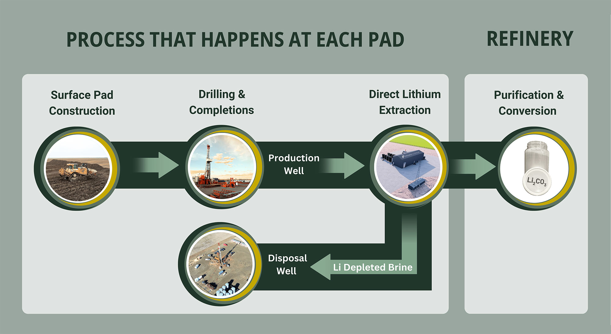 - The remaining lithium-depleted brine will be disposed of back underground into a different aquifer.